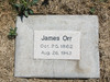 DEATH CERTIFICATE: OSBH DC (Marion County 1943) #758 - James Orr, male, single, occupation farmer, b. 25 Oct 1862 at Pedee, Oregon, d. 26 Aug 1943 in Salem, Oregon (Oregon State Hospital - usual residence Independence, Oregon) at the age of 80 yrs 10 mos 1 day, name of father John Orr (b. Arkansas), maiden name of mother Evelyn Estes (b. Arkansas), cremation 30 Aug, informant OSH Records.