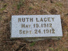 NOTES: OSBH DC (Polk County 1912) #2736 – Ruth Lacey, female, infant, b. 19 May 1912 near Airlie, Oregon (8 miles NW of), d. 24 Sep 1912 in Airlie, Oregon (8 miles NW of) at the age of 4 m’s, name of father Harry Lacey (b. Iowa), maiden name of mother Mollie Howard (b. Arkansas), interment: 26 Sep 1912.